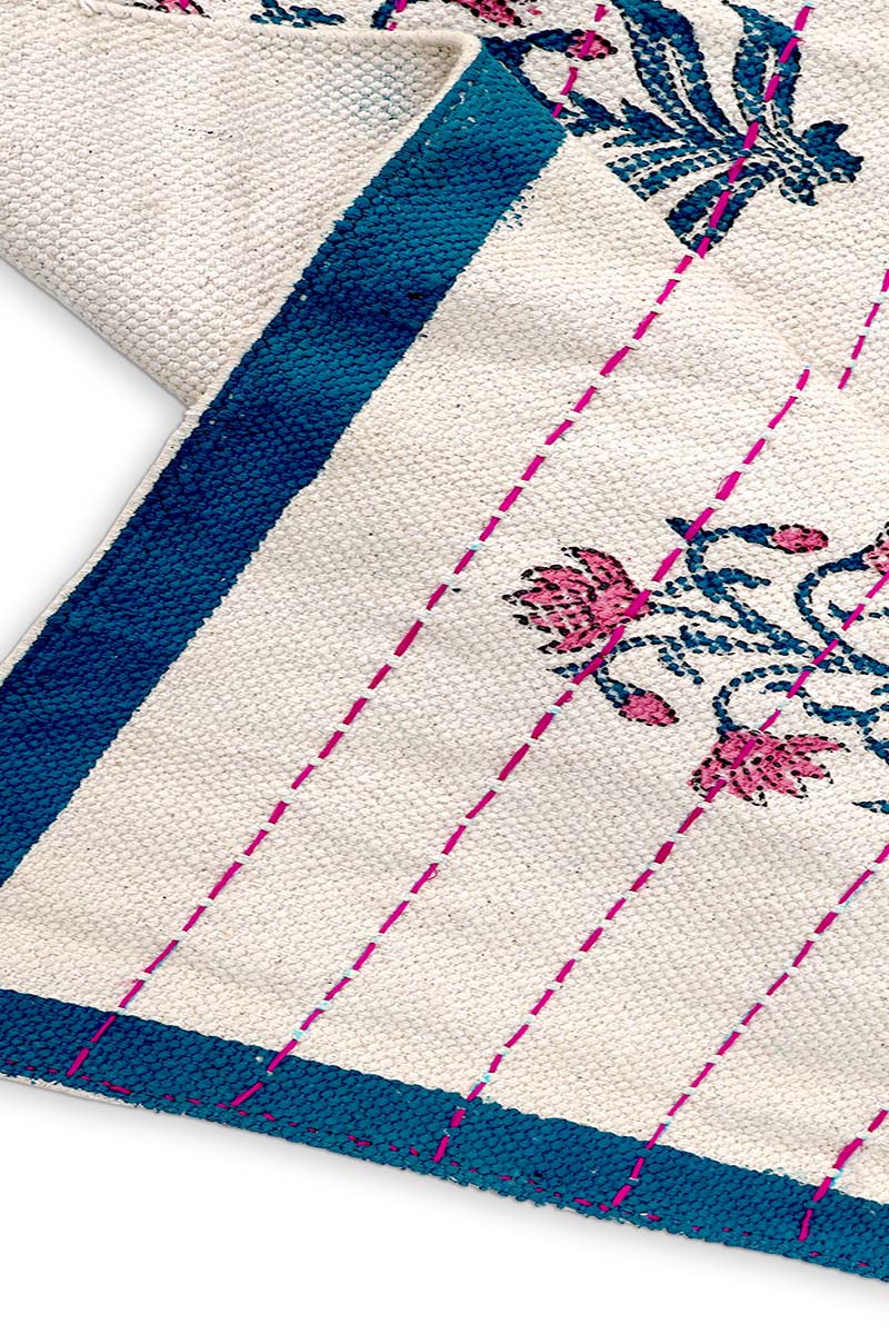 Stunning Kantha Cotton Rug – Luxury Artisanal Floral Dhurrie