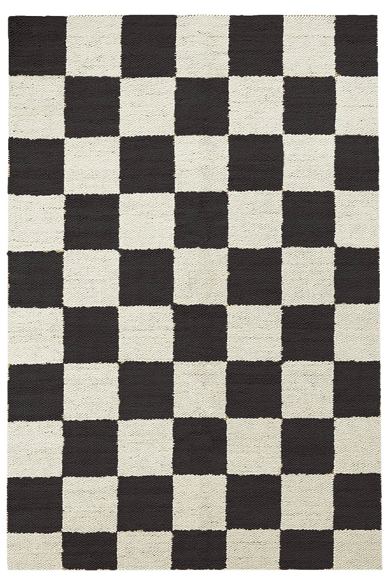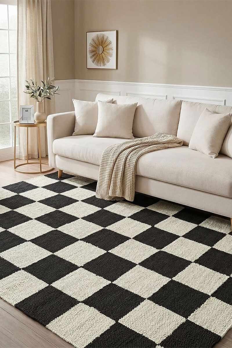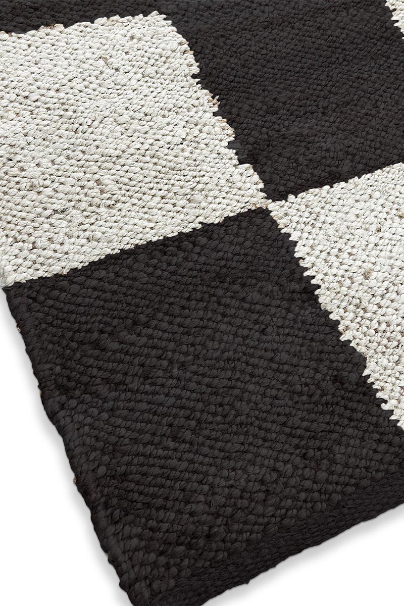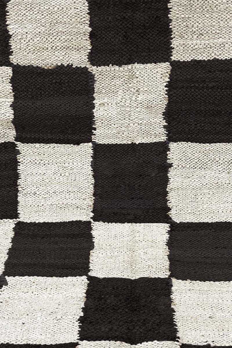 Add bold elegance to your space with this striking Black and ivory checkerboard Hand Woven Rug. . Expertly crafted from premium natural fibers using traditional techniques, this reversible Modern Boho Dhurrie offers excellent durability and artisanal texture for high-traffic areas.